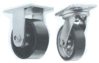 Offer a high resistance to impact in the critical areas of the raceway and king pin. The larger heat treated king pin increases the resistance to stress, from constant impact created by drag line operations or from continuous towing. The increased diameter, heat treated raceway reduces impact by spreading the shock over a larger area. Designed for use on: mobile racks utility trucks, conveyor or drag line operations, box trucks, platform trucks or where added impact resistance is required. All roller bearing wheels. Other sizes, wheel types and brakes are available - call for prices. CALL FOR QUANTITY DISCOUNTS! FOB CA.