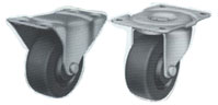 Low priced casters for use where operating conditions are not overly severe. Heavy gauge steel with hardened ball bearings and single raceways. Zinc plate finish prevents rust. Plain bearing wheels eliminates maintenance. Typical applications: dollies, parts bins, portable storage rack and conveyor systems.