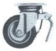 Husky, hardened double ball bearing swivel construction for loads as heavy as a man can push. Modified with special hand operated brake lever that simultaneously locks both swivel and wheel to hold equipment in place. FINISH: Zinc chromate for superior corrosion resistance. WHEEL: 2" wide with sealed roller bearings.